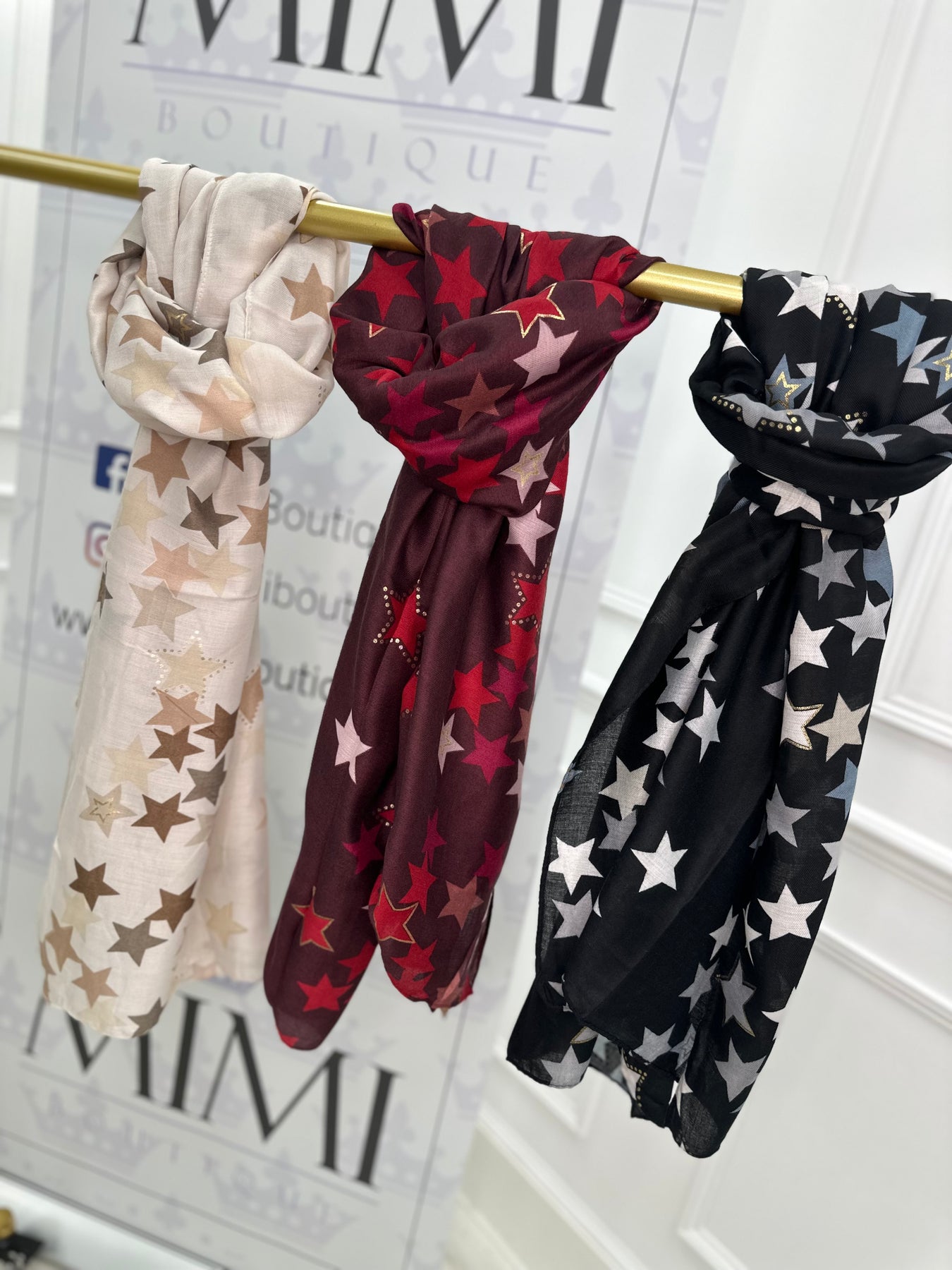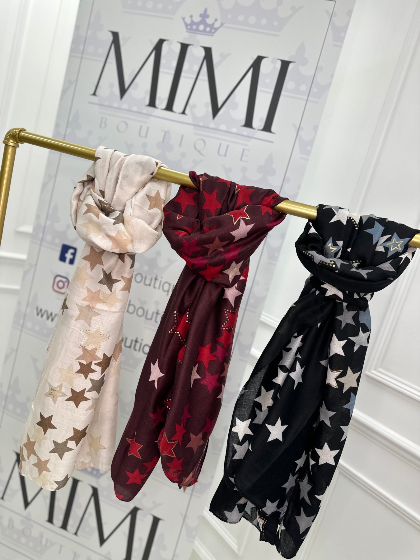 [{"id":55759066104183,"title":"Beige","option1":"Beige","option2":null,"option3":null,"sku":null,"requires_shipping":true,"taxable":true,"featured_image":null,"available":true,"name":"Starz scarf - Beige","public_title":"Beige","options":["Beige"],"price":1200,"weight":0,"compare_at_price":null,"inventory_quantity":1,"inventory_management":"shopify","inventory_policy":"deny","barcode":null,"requires_selling_plan":false,"selling_plan_allocations":[]},{"id":55759066136951,"title":"Black","option1":"Black","option2":null,"option3":null,"sku":null,"requires_shipping":true,"taxable":true,"featured_image":null,"available":true,"name":"Starz scarf - Black","public_title":"Black","options":["Black"],"price":1200,"weight":0,"compare_at_price":null,"inventory_quantity":1,"inventory_management":"shopify","inventory_policy":"deny","barcode":null,"requires_selling_plan":false,"selling_plan_allocations":[]},{"id":55759066169719,"title":"Red","option1":"Red","option2":null,"option3":null,"sku":null,"requires_shipping":true,"taxable":true,"featured_image":null,"available":false,"name":"Starz scarf - Red","public_title":"Red","options":["Red"],"price":1200,"weight":0,"compare_at_price":null,"inventory_quantity":0,"inventory_management":"shopify","inventory_policy":"deny","barcode":null,"requires_selling_plan":false,"selling_plan_allocations":[]}]