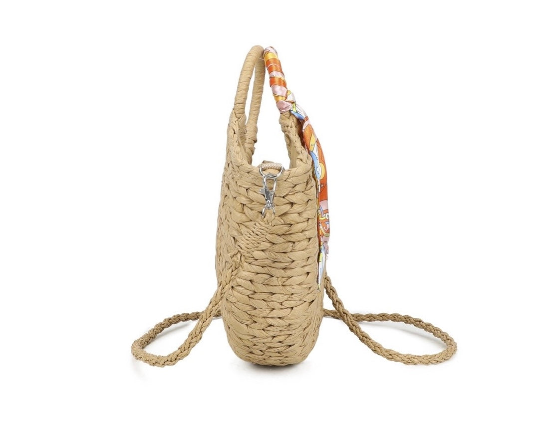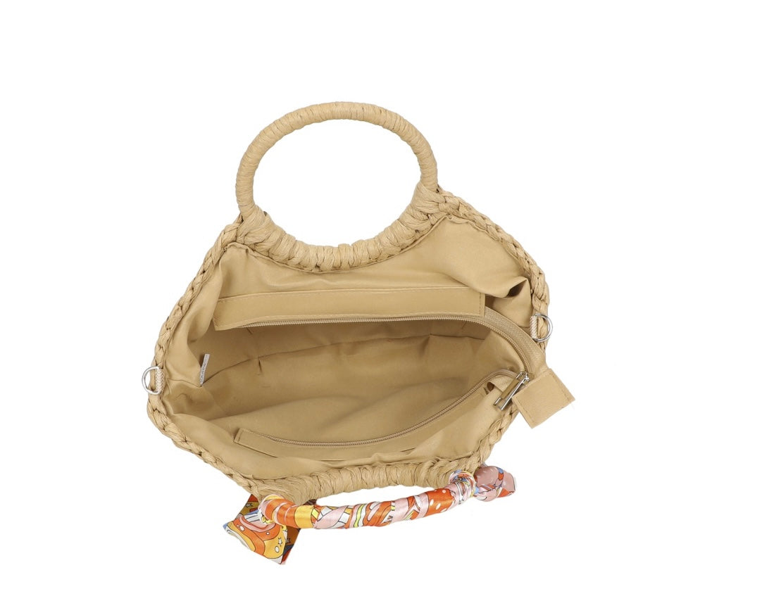 Raffia bag with orange ribbon